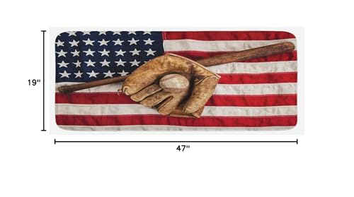 Ambesonne Baseball Kitchen Mat, Vintage Baseball League Equipment USA Grunge Glove Bat Fielding Sports Theme, Plush Decorative Kitchen Mat with Non Slip Backing, 47″ X 19″, Brown Red